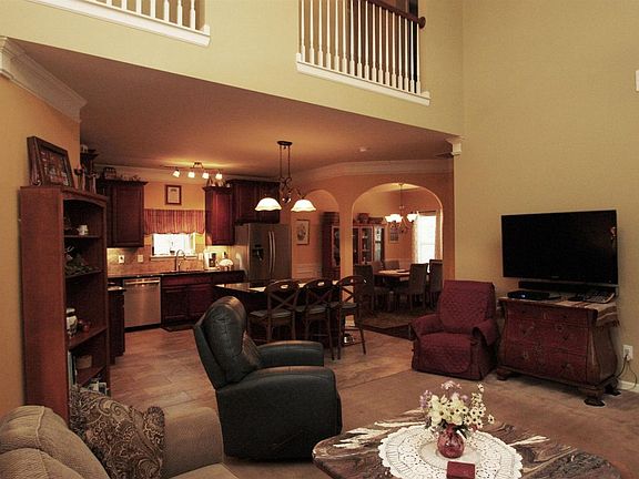 Beautiful, spacious home features vaulted ceilings and open floor plan with Kitchen open to both Great Room and Dining Room, plus guest Bedroom and Bath on main level. Granite countertops and stainless appliances, and lovely after-market tile floor upgrade in Kitchen. Huge Master Suite and 2 additional Bedrooms upstairs, each with cathedral ceiling. Tons of overhead attic storage space too! Great price and square footage-- a must see home!