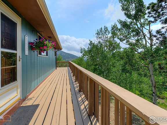 Charming mountain retreat with gorgeous detached studio/office (not included in square footage). Situated on a gently sloping, private 1.14-acre lot with a mix of pine, aspen and meadow overlooking a peaceful valley. Ranch with walk-out basement offers inviting outdoor living space and views on both levels with wrap-around deck and lower level patio. Studio is beautifully finished with cherry floors: perfect for yoga, art or home-office. Only 5 minutes to Allenspark (Art Gallery, Tavern, Cafe)