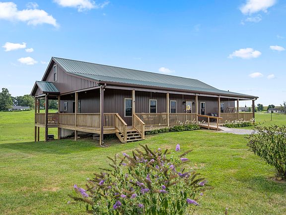 Rare opportunity... never before on the open market! This 62-acre estate features a quality-built, custom one-owner home with incredible potential. The main level offers a wide open concept floor plan, 3 bedrooms, 2 baths, and abundant natural light. The lower level includes a 1-bedroom, 2 full baths, a second kitchen, laundry hookups, 2-car garage, and ample storage—perfect for extended family or rental income. Built with 2x6 construction and 10'' poured basement walls, this home was designed for durability. The land is flat and versatile, ideal for subdivision, development, farming, or recreation, with 800' of road frontage and a scenic pond. Additional features include multiple outbuildings: an open structure formerly used as an airplane hangar, two metal buildings with electric and concrete floors, and an old barn—perfect for equipment, hobbies, or storage. Whether you're seeking a dream home, investment property, or country retreat, this unique property is loaded with possibilities and ready for your vision to unfold!