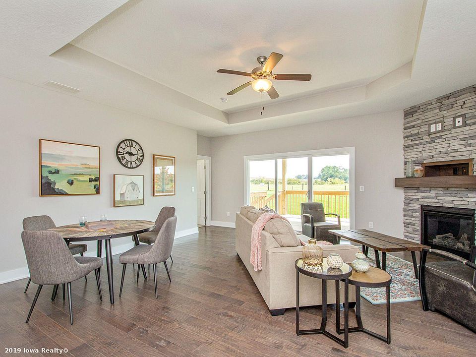Close in Feb receive $2500 closing bonus, Close in March receive $1000 closing bonus. Ask agent for details. Hubbell Homes Melrose plan over 1660 SF of main level living space unique open floor plan that makes for great entertaining space Kit overlooks the dinette & FR space & features painted white cabinets, quartz counter, tile bksplsh, & hrdwd flrs that flow thru dinette & into FR. FR features box ceiling & stone floor to ceiling FP & leads out to the covered deck to enjoy pond view. Entering the home from the garage you have a convenient mudrm blt in bench & hooks lndry attached. Lndry has access to master closet, which leads into MBA featuring a o'szd tile shower, quartz double vanity & tile flrs. Lrg MBR box ceiling is split off from 2 spare beds & bath that complete the main lvl. LL features 9' ceilings, stubbed in for future bath & is ready to fnsh Community clubhse & pool for homeowners & 5 yr. partial tax abatement