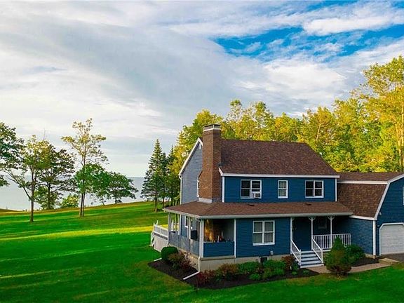 Enjoy spectacular view and sunsets on Lake Ontario! 408 Feet of lake frontage in a serene, private setting. This 3 bed, 2.5 bath colonial has been completely renovated. New kitchen appliances, cabinets, counters and floors. Master bedroom suite is spacious and welcoming with sitting area and fireplace. California closets. 2 Wood burning fireplaces. Wrap-around deck allows you to enjoy the views with plenty of space. Several outbuildings including a small cabin, and a "look-out". Loft style In-law suite (or rental) above garage. Just minutes from SUNY Oswego.