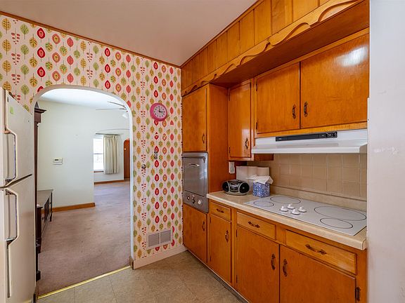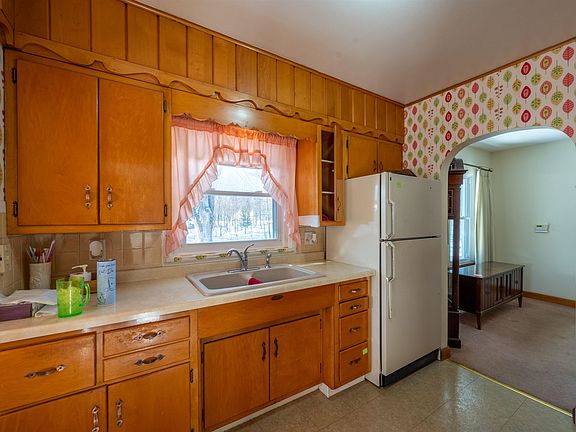 Welcome to your new home. This house sits at the end of Morgan Street. Vinyl siding and double pane windows add to the appeal of this home. The kitchen has a sweet breakfast nook. The dining room is the center of the home and opens up to the large living room. The house has 2 bedrooms and one full bathroom with a newer modular shower. The basement has a bright laundry room with washer and dryer staying. Direct vent water heater and gas forced air furnace. The back yard is fenced and leads into the large, detached garage. The garage has 2 overhead doors plus a large shop area for whatever your hobbies may be! Home is being sold in AS IS condition.