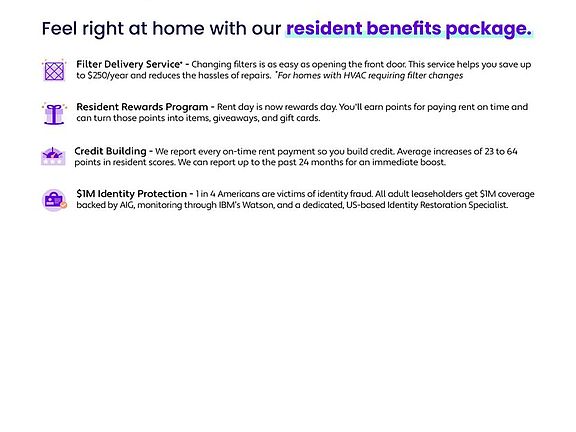 At Frontier Real Estate Services Inc., we strive to provide an experience that is cost-effective and convenient. That's why we provide a Resident Benefits Package (RBP) to address common headaches for our residents. Our program handles air filter changes credit building and more at a rate of $35.00 /month, added to every property as a required program. More details upon application. In addition to RBP, we provide access to liability insurance that meets your needs.