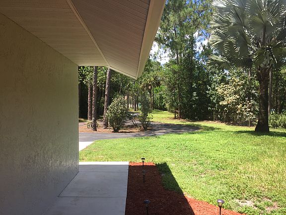 GREAT LOCATION in Golden Gate Estates. 3 beds, 2 baths with Den on 1.14 acres off Collier. A long, paved, circle driveway leads to the home situated on the back half of the property increasing privacy. Large windows and French-style doors let in lots of natural light. Vaulted ceilings in the kitchen and living areas give this home an open and airy feel. The freshly remodeled master bath has a walk-in shower with an overhead rain shower water fixture. Granite countertops and custom backsplash are situated atop real wood cabinets in the eat-in kitchen. Crown molding and chair-rail can be found in the common areas and in the master. 18"x18" tile set on diagonal with granite inserts in the large living and dining areas, kitchen, hall, and laundry. Tons of storage, 8 closets. Attached 2 car garage, fully fenced backyard with 3 gates, a utility shed for your mower and gardening supplies. Newer roof and newer AC. The water system has just been serviced and includes a separate pump for the irrigation system. Over half of the screened lanai is covered for entertaining rain or shine. The bonus room can be used as a separate entertaining area or as an office and has built in bookshelves.