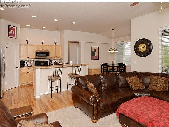 Great opportunity! Newer ranch home with walkout basement, 10' ceilings throughout kitchen, dining, family room, and entry. Open floor plan, hardwood floors, pantry, kitchen island, large main level laundry room and A/C. Master retreat has walk-in closet, double vanity sink area and large shower. Covered deck looking upon nice sized backyard, completely fenced and sprinkler system. Great location, close to I-25 for easy commute.