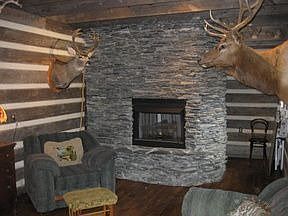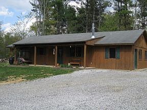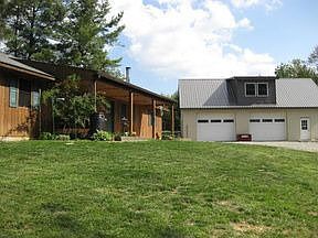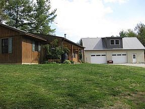 This ranch home has a combined living room,open kitchen and dining room. Wow! Look at this chinked log den with a grand stone fireplace with gas logs. Cherry engineered hard wood floors.Over $30,000 of stoned walls and stone patio.(A must see!)The 28 x 44 garage is something else. Full walk-up area over head with electricity. Pex pipe in the floor for heating (not hooked up). Wood stove in garage.