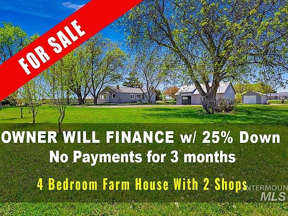Idyllic Idaho farm house on an acre of land surrounded by farm land so it feels like a 40 acre estate. This cute country home has had many recent updates including refinished hardwood, new carpet, new AC, fresh coat of paint inside and out. The property has fruit trees and old growth cottonwoods, english walnut and some willow trees. The larger shop is 840 sqft, with two garage door bays and includes 220 power supply. This home comes with 2 wells, one for the house and the 2nd one for irrigation. This place is ready for you to come make it your own. Located just 40 minutes from Downtown Boise, yet far enough away to get away from the rat race. OWNER will finance buyers loan with 25% down. Come see this gem before it's gone.
