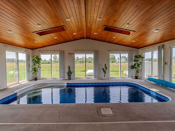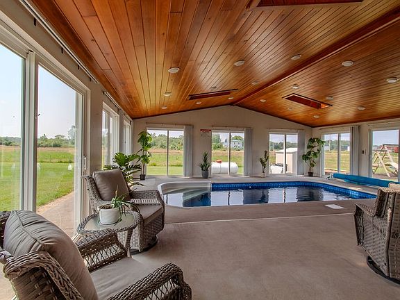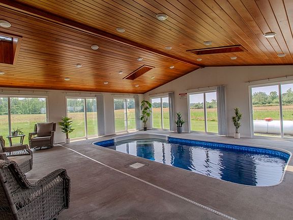 Setting Way back from the road! Wonderful 3/4 Bedroom 2 FULL BATH Colonial on Almost 2 PRIVATE ACRES ! Your own HOTEL STYLE indoor resort that features a HEATED INGROUND - INDOOR POOL , cathedral ceilings with T&G