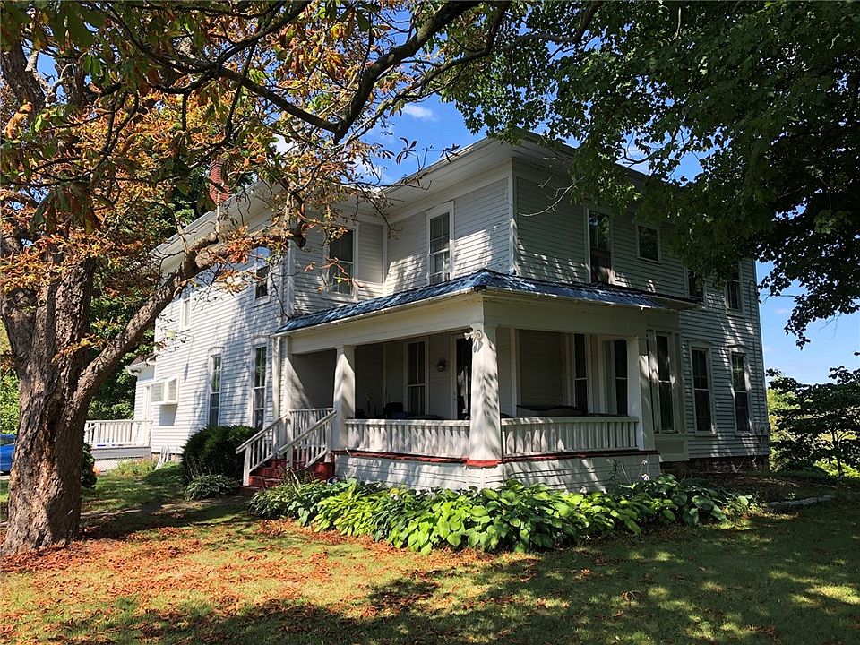 This 2,556 square feet 3 possible 4 bedroom home sitting on 1.75 private acres with a 35 x 40 barn with a loft and metal roof. Home features eat-in kitchen with ceramic floor and Dutch door to the formal dining room, living room with a bay window, door to the covered porch and glass French doors to the parlor with a woodstove and porcelain floor, 1st floor laundry, 1st floor full bathroom, all new windows on the 1st floor except one within last few years. Two staircases to the 2nd floor, large half bath with plenty of room for a shower and separate bathtub, 2nd floor has hardwood floors, 3 bedrooms plus a bonus room. Furnace 3 years old. Hot water heater new 2022. Fenced area for the dogs attached to the house. Gazebo and fenced pond with a waterfall with electric and pump with a gate behind the barn, needs some TLC but could be awesome again. Delayed negotiations: Offers will be presented on September 27th 11:00