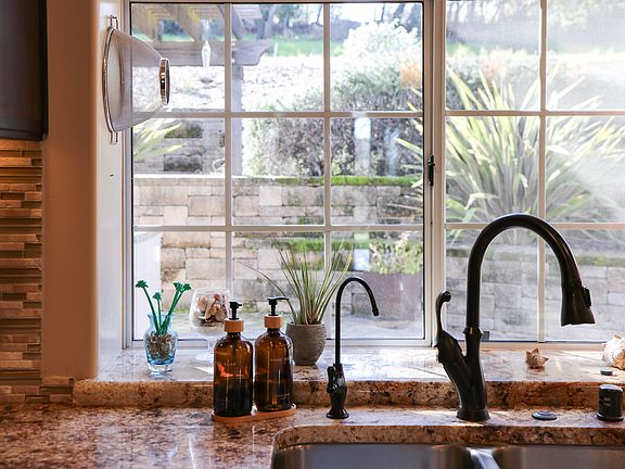 Large single level house situated on groomed grounds featuring a gentle, natural slope. Private, in the country feel, yet close to town, freeway and schools. Kitchen features stainless steel appliances, granite counters and access to back patio, 3 full bathrooms, spacious laundry room with washer and dryer provided. Air conditioning, soft water, double car garage. Roomy back patio with outdoor bar. The enclosed garden at the rear of the property is excluded and will be retained and used by the owner.
