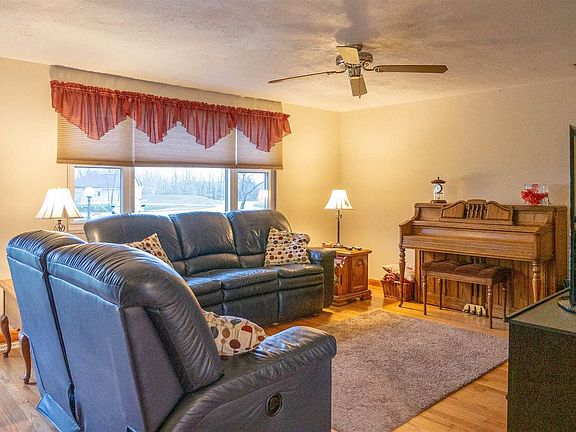 Quiet Country Neighborhood located on the edge of town! 1.75 Acre Setting! Comfortable Tri-level style home with 3-4 Bedrooms & 2 Full Baths. Living Room, Formal Dining, Kitchen w/ appliances that remain. Lower Level features spacious family room/recreation area with sauna that remains, possible 4th Bedroom, & separate laundry. There is an oversized 2 Car Attached Garage plus a separate 24x24 - Two Car Detached Garage/Barn. Recent Updates include Metal Roof, Vinyl Replacement Windows, Guttering, Well Pump, Septic System, Bathroom Upgrades, & More! A great place to call home!