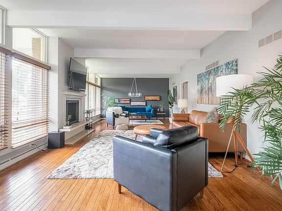 MUST SEE!! Stunning mid-century modern home in prestigious Forest Park neighborhood! Offering 4 bedrooms 4 bathrooms, two primary bedrooms ensuite with walk-in closets, office space, and an expansive 4000+sqft of beautifully detailed rooms and an open flowing layout making living and entertaining an absolute pleasure. Featuring floor to ceiling windows and sky-lights illuminating natural light throughout, gorgeous beamed vaulted ceilings, hardwood floors and built-ins galore. Two fireplaces to enjoy and a finished rec/room in basement. Outdoor gas grill & a gas-line to kitchen, a premium hot tub, large patio & an immaculate landscaped yard with irrigation system; 4 car attached garage and carport. Located at the end of a quiet cul-de-sac.