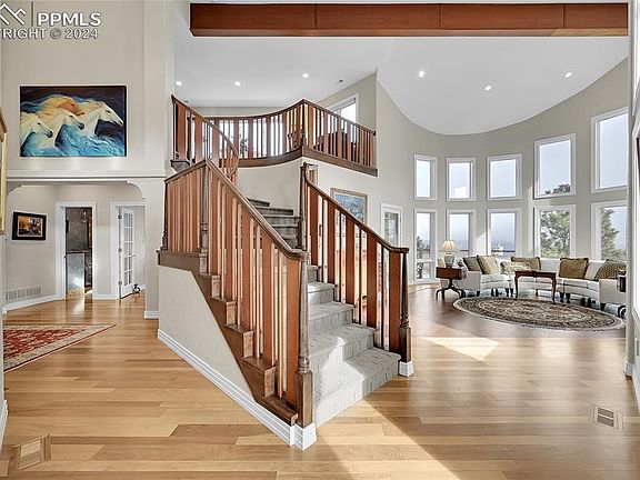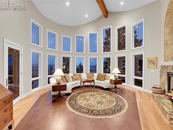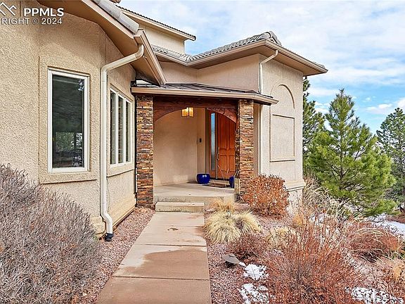 This stunning 2-story home on nearly 3/4 acre lot, nestled in The Top of Skyway neighborhood. The meticulously designed home offers 4 bedrooms, 4 bathrooms, a spacious 3-car garage, with luxury and functionality across its expansive 5677 square feet. Step inside to discover a recently updated gourmet kitchen, where culinary dreams come to life. The kitchen features modern amenities, high-end appliances, Brazilian hardwoods, a double-sided fireplace, and a thoughtfully designed layout, providing the perfect space for both casual family meals and entertaining guests. The primary suite offers a luxurious retreat with a fireplace and grand views of the city and a glimpse of The Garden of the Gods. The highlight of the suite is the recently renovated & custom five-piece bathroom with radiant floor heat. The pristine design and attention to detail creates a spa-like atmosphere. Not to be outdone, the great room boasts breathtaking panoramic views including the city lights twinkling in the distance, glimpses of the iconic Garden of the Gods, and majestic mountain views. Whether enjoying a quiet morning coffee or hosting lively gatherings, this space provides the perfect backdrop for any occasion. This home blends modern elegance with the natural beauty that surrounds it. Be sure to not miss the Italian plaster, double-sided fireplace and butler's pantry in the dining room, the cozy TV room with a walkout to the deck, a den overlooking the bank of 2-story windows in the great room, the lower-level family room with a wall of windows, a 2nd bedroom ensuite with an updated bathroom and 2 additional bedrooms connected with a Jack & Jill bathroom with radiant heat in the lower level. And finally, the outdoor space exemplifies the best in Colorado living. Enjoy the outdoors with a new private hot tub deck or take in the sweeping views from the deck running the length of the home. The landscaping has been updated as well to ensure you can enjoy the tall pines across the property.