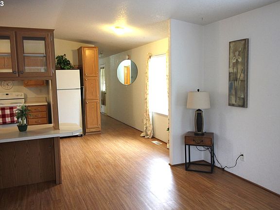 Centrally located 2-bedroom, 1 bath single wide located in affordable 55+ park. Open concept, living room, Kitchen and dining area. Exterior features a Carport with nice size storage shed, Wheel chair ramp & covered porch. Close to Shopping, Medical facilities & Ocean Beaches. Current space rent $302
