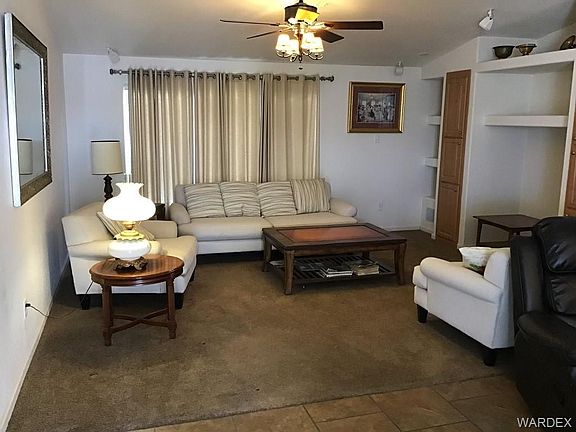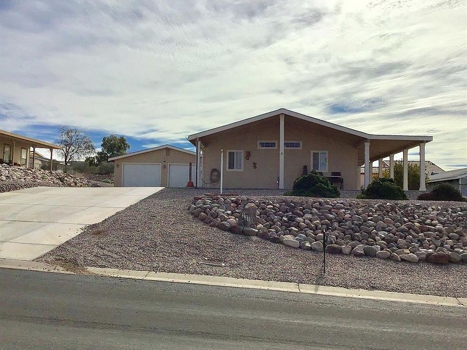 GORGEOUS VIEWS. No HOA. River, lake and casino close in desirable Sunridge Estates. 4 car boat deep garage. This unique Master Bedroom set up includes his and her's bathroom's with huge walk-in closet! The 2 guest bedrooms are on the opposite side of the house for privacy. This was built with 2x6 construction and dual insulated windows making it feel like a stick built house. Lots of room for parking all the river and desert toys. Covered patios let you take advantage of the spectacular mountain views. Upscale cabinets and kitchen island provide lots of storage in the kitchen. Silestone counters. Ceiling fans. Heat pump was new in 2016.