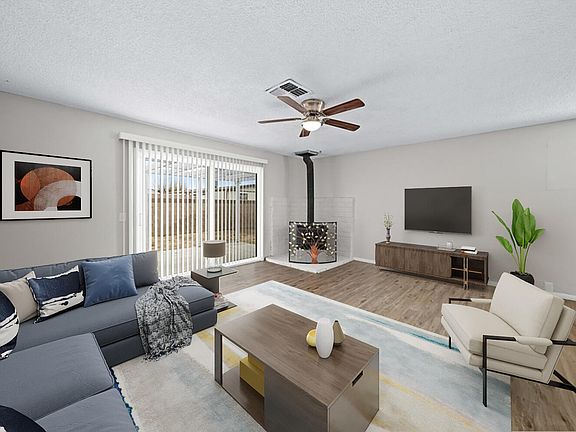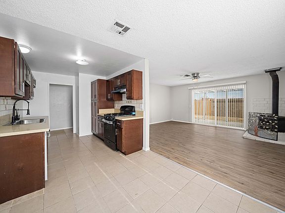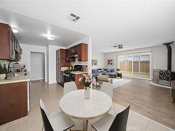 BACK ON MARKET. Be welcomed to this beautiful Rosamond home with goregeous upgrades. Step inside and notice the bright and airy living space with wood burning fireplace surrounded by white brick and sliding door access to outside. This open space will lead you to the eat in kitchen with beautiful updated dark brown cabinets and stainless steel appliances. Next you'll find the sizable primary bedroom with a large closet, stunning upgraded primary bathroom. Find 2 additional bedrooms with large closets, one has private sliding door access to backyard and a hallway bathroom. Venture to the backyard, great size for entertaining and find the shed perfect for additional storage. Brand NEW ROOF just installed Jan 2024. NEW windows,, NEW Sliding Doors, Fresh Paint and NEW flooring throughout.