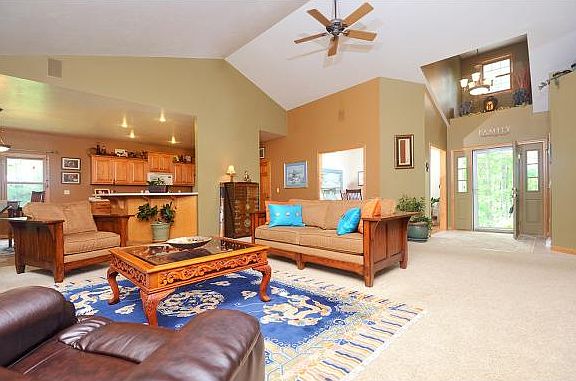 Enjoy nature? Enjoy serene solitude? Then you will love this spacious, open-concept ranch situated on 1.6 wooded acres. Featuring a huge kitchen/dining area w/TONS of counter space + pantry, new appliances, vast living room w/cathedral ceilings + gas FP, ample master suite w/private bath, & uniquely finished LL w/bamboo flooring. 3.5 stall garage has LL access. Some DNR wetlands on property.