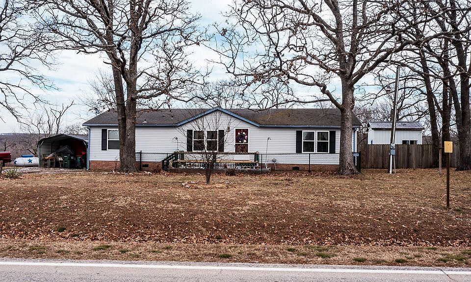 Situated less than 15 minutes to Bolivar on a spacious 0.86-acre lot in Humansville, Missouri, this 1,568 sq. ft. home combines comfort, practicality, and a prime location. Manufactured in 2000 and set on a permanent foundation, the home features 3 bedrooms, 2 bathrooms, and a bonus room off the master suite. The kitchen and dinning room equipped with a newly tiled backsplash along with the matching island featuring a large farmhouse sink and new faucet. The HVAC is forced-air propane heating system, and central electric AC. The property includes a carport with enclosed storage, a covered back deck for relaxing outdoors, and a fenced yard for pets.Additional features include a private well, lagoon, and an owned propane tank, adding to the home's functionality. The concrete block crawlspace and slab with tie-downs offer extra stability and peace of mind. Conveniently located between to of the best fisheries, Pomme de Terre Lake and Stockton Lake , with easy access to Highway 13, this property is perfect for those seeking a peaceful area close to outdoor recreation and modern conveniences.