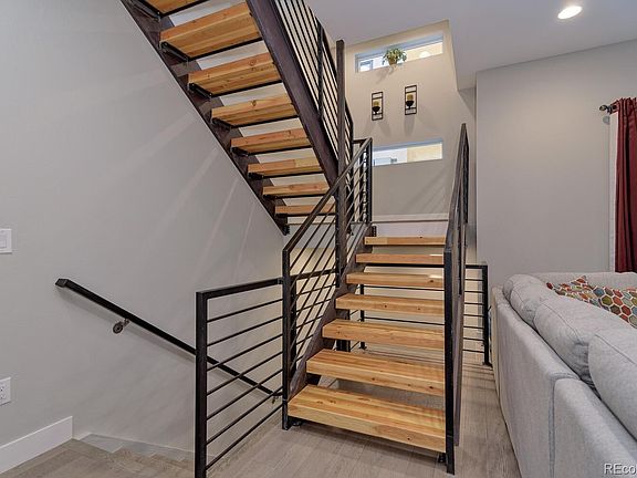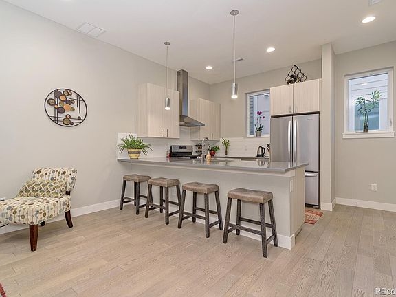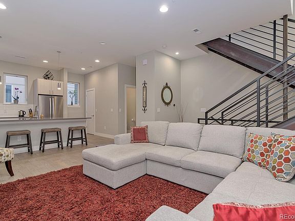 Location, Location, Location in highly sought out West Highlands neighborhood. This property is quietly nestled within the community with views of Pikes Peak! This premium townhome is a short walk to historic 32nd Street shops, restaurants, and bars. Located within 10 minutes of five grocery stores, and Tennyson street restaurants and stores. *This modern home features a hardwood staircase leading up to a large and open main floor with 10ft ceilings. Modern touches throughout with a balcony off the living room, including a Gas line for grills. The kitchen area offers upgraded stainless steel appliances, designer paint, tile, soft-close drawers and a large walk-in pantry--beautiful white oak floors throughout the main living area, eye-catching pine staircase to the next level. *The next floor has 9ft tall ceilings and two large bedrooms. Each bedroom has a master on-suite with quartz countertops and Delta faucets. The laundry room that can fit a full-size washer and dryer included is between the bedrooms on the same floor for easy accessibility. *The expansive rooftop patio provides you with enjoyment of outdoor living in the city. With views of Pikes Peak and an additional gas valve, perfect for an outdoor BBQ's and summer gatherings. The house comes beautifully furnished, all you have to do is pack your suite cases.*Do not miss the opportunity to call this gorgeous West Highlands Townhome your own!