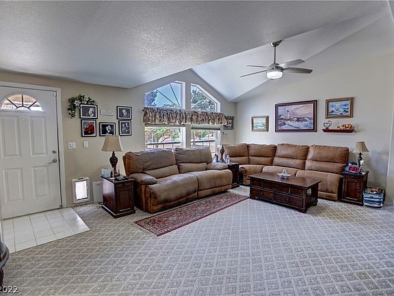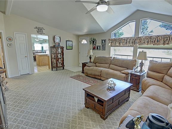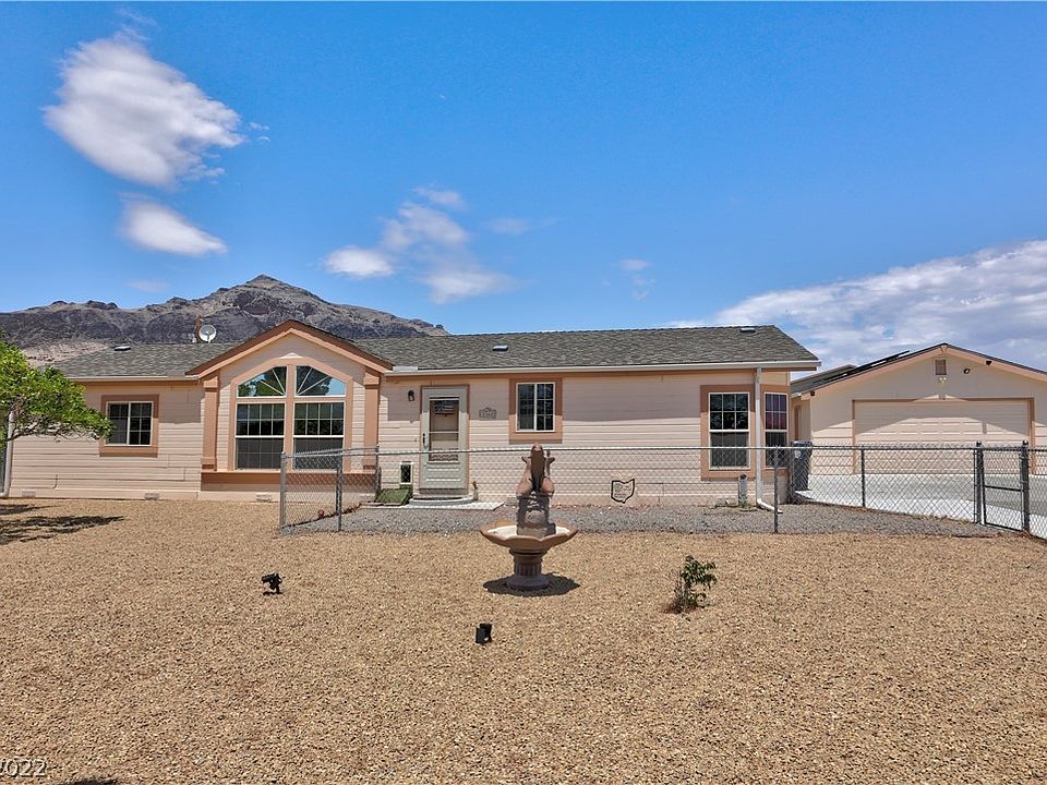 Looking for a new home on the North end of Pahrump? Look no further! This adorable 3 bdrm 2 1/2 bath home comes with a 2 car garage, RV garage, fully fenced front and back yard w/an electric gate, PAID solar panels, in a quiet and beautiful neighborhood. You can relax on the back covered patio and embrace the breathtaking mountain views. This lot has plenty of room for your RV, toys, and horses!