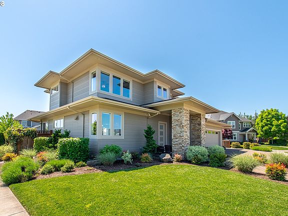 Contemporary Prairie Style home in Hawthorne Estates cul-de-sac. 2014 Future B Homes' Tour Home features 10' ceilings throughout, professional style kitchen w/ dbl ovens, pro rangetop/hood, walk-in pantry & large island. White oak hardwood flrs w/ mocha cabinets. Quartz slab in Kitchen & all Baths. Open, flexible spaces. OVERSIZED 3-car garage (over 1,000 s.f.) Multiple patio spaces & putting green for entertaining. Smart home products