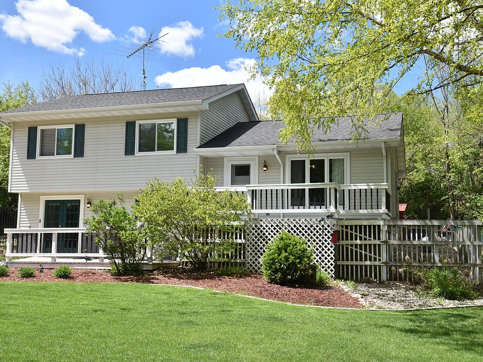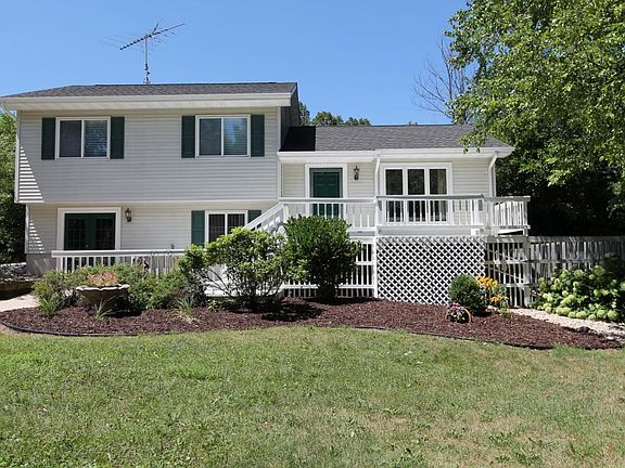 Meticulous well maintained 4 bedroom, 2.5 bath w/large deck overlooking rare beautiful secluded wooded 1.19 acre lot at the end of quiet street. Freshly painted w/new carpet, vaulted ceilings, hardwood floors, large eat-in kitchen, breakfast bar and pantry. MBR has large closet, dual shower heads in master bath. LL w/o French doors lead to spacious exposed aggregate patio and fire pit. 220 amp electric & ample room for workshop in 2.5 car garage. Storage in attic, basement & garage. Walking distance to private beach and boat launch. Must see to appreciate!!!