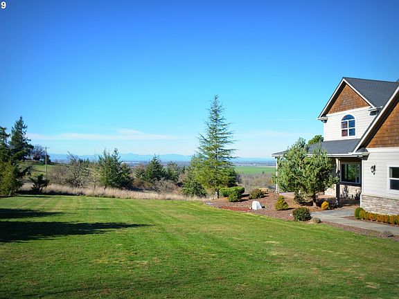 Stunning home flooded w/ light offers sweeping views of the Willamette Valley and Coburg Hills sitting on nearly 10 acres. Kitchen equipped with professional grade appliances, and granite counters. Entertain on the covered, stamped concrete patio wrapping 3 sides of the home. Theater room fully equipped. Detached guest house offers add. 2 bedrms,1 bath. Insulated out building currently used as Gym. Huge master w/ tub, rainforest shower.