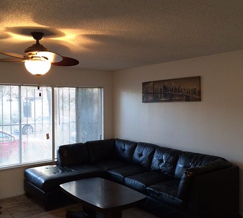 Upgraded 2 bed/1.5 bath townhouse in North Las Vegas! The property features a new water heater, new AC unit, and new laminate flooring upstairs.