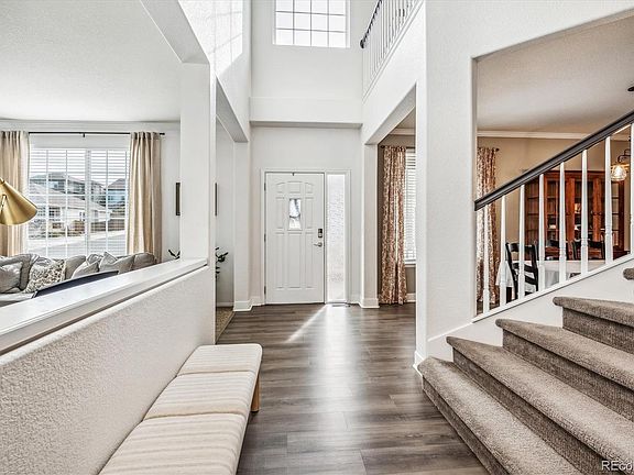 Nestled in the embrace of Castle Rock, this amazing home is a haven where dreams and comfort converge. Just beyond the majestic silhouette of the famed “Rock” itself, this 5 bedroom, 5 bath sanctuary graced with a fully finished walkout basement is a treasure waiting to fill your life with joy and serenity. As you step through the door, prepare to be swept away by many updates that are throughout the home. LVP flooring guides you through and leading to a kitchen that has been updated to inspire culinary adventures with its gleaming stainless steel appliances and modern ambience complete with island. Journey upstairs, where the grandeur of the primary suite awaits, crowned with vaulted ceilings Indulge in the inspired 5-piece master bath, a sanctuary for your senses, coupled with a walk-in closet that whispers peace. Three additional bedrooms, each with their own story, and two baths share the level with an open loft and a versatile flex or bonus room — a canvas for your imagination. Descend into the walkout basement, a realm designed for enchantment and entertainment. This lower kingdom features another inviting bedroom, bath, and a wet bar that beckons you to celebrate life’s moments. The rec room, warmed by a cozy fireplace, and an additional great room extend an invitation for shared laughter and warmth. Abundant storage and a craft room stand ready to house your treasures and inspirations. Step outside and the patio cascades into an outdoor paradise featuring a vast deck, a welcoming lower patio, a brand-new sport court for the athletically inclined, and a turf yard that promises endless fun with minimal upkeep. Here, beneath the sky and within the heart of Castle Rock, your future of cherished memories and new traditions is waiting to unfold. Welcome to a home not just splendid in its features but magical in the life it offers ready to make your own memories. Be sure to check out the low tax base in comparison to other areas in Castle Rock!