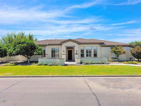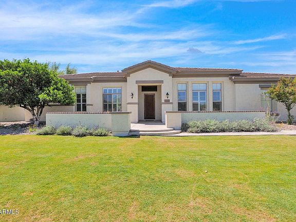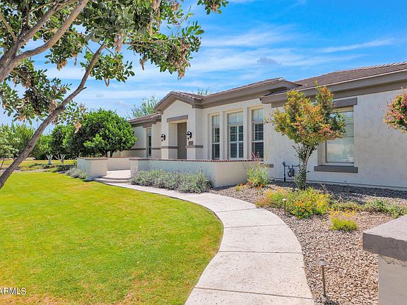 Discover the epitome of luxury living in the prestigious gated community of Arboleda at 3361 East Inglewood Circle, Mesa, AZ. This exquisite 5 bedroom, 3.5 bathroom, single-level, semi-custom home is perfectly situated on a sprawling 1/2 acre lot, offering both privacy and elegance. Designed with a thoughtful split floor plan, this residence caters to both comfort and sophistication. The gourmet kitchen is a chef's dream, featuring custom cabinets, a double oven, granite countertops, and a cozy breakfast nook. A convenient walk-in pantry is strategically located directly off the garage, making grocery unloading a breeze. The family room, warmed by a gas fireplace, provides a welcoming space for relaxation and gatherings. Formal occasions are well accommodated in the separate living and dining rooms, each space defined by 10 foot plus ceilings that enhance the home's spacious feel. Flooring throughout is a tasteful mix of tile and carpet, laying the foundation for your personal decor. The primary suite is a true retreat, with crown molding stretching from the front to the back of the house, complete with a sitting area, a soaker/jetted tub, and a large shower for ultimate relaxation. An additional office/den/bonus room offers flexibility for your lifestyle needs. Wood plantation shutters through most of the home. Outdoor living is equally impressive, with a large backyard featuring a pool with child's play shelf and fountains, built-in BBQ, fire pit and 13 orange, lemon and grapefruit trees, all maintained with low-cost flood irrigation. The covered patio provides a shaded space for outdoor dining and leisure, while the RV gate ensures easy access for all your adventures. Ample storage throughout the home and a fresh coat of outside paint add to the convenience and appeal of this remarkable property. Located close to the 202 freeway, residents enjoy easy access to all parts of the Phoenix metro area, including PHX Sky Harbor. With top-rated schools and beautiful parks nearby, including the Mesa Tennis & Pickleball Center at Gene Autry Park, big league dreams, and Kensington Groves Park, this home is not just a residence but a lifestyle choice for those seeking the best in Mesa living.
