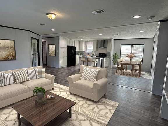 Nestled on 5 beautiful acres, this 2021 manufactured home offers the perfect blend of comfort and country living. With an open-concept, spilt bedroom design, the home features three spacious bedrooms, two full bathrooms, & a versatile office/flex room. The kitchen & living areas flow seamlessly, creating a warm & inviting space for gatherings. A convenient utility room includes a washer & dryer, both of which, along with the refrigerator, will convey with a fair offer. Surrounded by mature trees & wooded areas, the property provides privacy, shade, and a serene natural setting. Whether you’re looking for a peaceful retreat or the perfect place to start your homestead, this well-kept home on acreage is ready to welcome its next owner. There are a few extras on the property such as a carport in the back, chicken coop, and access to water for fishing. This home has never flooded per sellers. Don't miss this opportunity.
