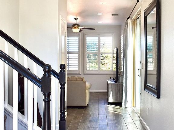 Step inside to a welcoming first floor, where the open-concept living room flows seamlessly into a dining nook and a stylish kitchen featuring quartz countertops, stainless steel appliances, a gas stove, and a breakfast bar. Upstairs, the spacious master suite boasts a large walk-in closet with built-in storage, a dual vanity with granite countertop, a separate bathtub and shower, and a relaxing balcony with stunning views of the Sierra Mountains.