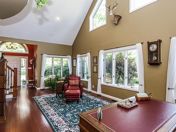 COUNTRY LIVING AT IT'S BEST! This home offer 3 bedrooms with additional room for a office/study or a play area, 2 1/2 baths and an open floor plan. You step into an amazing 2 story great room with cathedral ceiling and large window for lots of natural light, bamboo flooring and built in shelves. New quartz counter tops & backslash just installed in kitchen. Kitchen is open to breakfast room and family room with an electric fireplace. Large master suite on first floor with updated bath with garden tub and shower. Upstairs you will find 2 additional bedroom and a bonus room off one of the bedrooms, perfect for office or play area. Lower level has a TV room w/bar and large rec room. Unfinished area for storage. Outside you will find 3 outbuildings. Largest is 40x60 with electric, water and 2 large electric garage doors. 30x25 horse barn with 2 stalls, 2 pastures and updated fencing. The chickens call the 3rd barn home, (33x20). Geothermal heat. This truly is a special home.