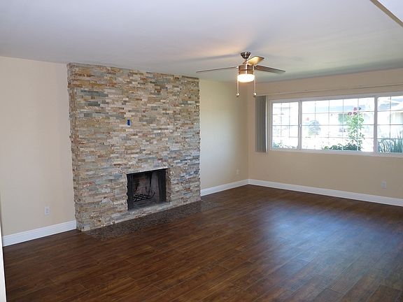 Modern open floor plan with private landscaped yard and large covered patio off kitchen and dining room. Newly remodeled throughout, large kitchen with stainless steel appliances. Large master suite with sitting area, full master bath and sliding glass doors to additional covered patio. Family room with travertine ledger stone fireplace and large windows. Two car attached garage with washer and dryer.