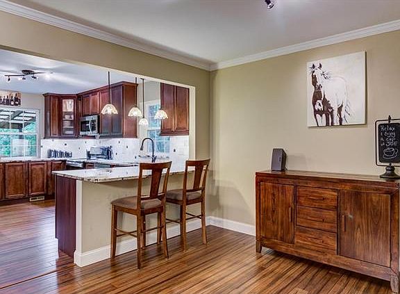 - Kitchen: Breakfast Bar, Custom Cabinetry, SolidSurfaceCounter, Eat-In Kitchen, Pantry