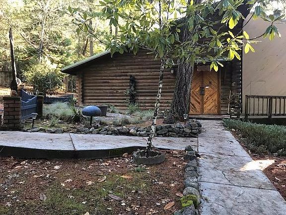 Motivated seller,really huge price reduction. This unique 2-story custom built log home has many distinctive features that show that it is a well-designed home. It sits on a peaceful and private 5.46 acres backed by BLM, with a quiet creek (Cove creek) running through it. A paved driveway leads to the house, and to the large (23'x24') detached work-shop. The house features 2,550 SF of living space. The downstairs houses a large living room, a large country style kitchen that has an island a dining area and a breakfast nook, a large laundry room, a guest bedroom with its bathroom, and the master bedroom with its large bathroom. A beautiful iron-works spiral staircase leads to the upper floor where a nice loft-library, office, and a half bathroom are located. A large deck in the front completes this special home. There is also a cellar under the house, a metal carport, and a wooden carport. A new metal roof was installed on the house 5 years ago. The property is being Sold As Is''.