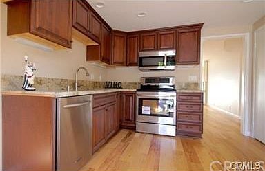 Located right up the street from the popular local Strands beach in the private gated community of Dana Light. This home is filled with tons of natural light and is very warm and inviting. The home has been recently remodeled with distressed beveled wood flooring throughout the entire downstairs, new carpeting on the stairs and throughout the upstairs. Granite counter tops, upgraded show with new mirrored closet doors. The master suite is privately located downstairs, and the 3 bedrooms are upstairs. The living rooms has a cozy fire place that leads out to a large patio area. Also important is the 1 car driveway, and the oversized 2 car garage, perfect for parking and storage. There is also a community pool with spa and covered sitting area, 2 tennis courts, basketball court, picnic area, and dog park. This home is move in ready and hasn't been lived in since the remodel.
