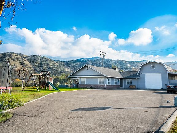 I am SO excited about this property! Just when you think we've uncovered every really special Springville property, we go and discover another one! At the top of a gently rolling green hill is this completely remodeled 4 BR, 2 full BA 2092 sq. ft home on a gorgeous just under 3 acres piece of land. There is a share of ditch water that comes with the property, which makes for lots of watering possibilities. The flooring is a dark wood laminate, and the kitchen has quartz countertops, an arabesque backsplash, and soft close cabinetry. There is a Kitchenaid double oven with a 5 burner with griddle stove top. The living room has plantation shutters, a 60 blade fan, and tons of windows to take in the incredible views! The large patio has a built-in bar with a quartz top. The garage is large and tall and there is an additional covered storage area and a dog run. To top it off, there is a party barn complete with a sink and bathroom. The possibilities for this fun space are limitless.