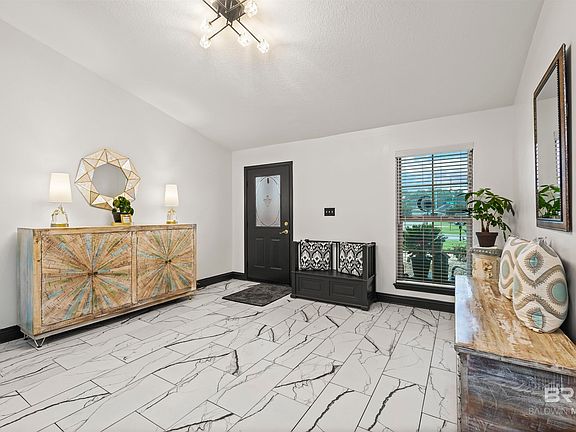 One-of-a-kind Brick home, newly remodeled and updated Kitchen. Open floor plan with porcelain tile throughout the home. Fresh paint inside. Stunning cathedral ceiling and custom blinds. All rooms have ceiling fans. Plenty of storage through all the rooms. Spacious master bathroom, as well as walk-in master closet. Custom built barn door leading to laundry and walk-in pantry. Custom 10' kitchen island. Custom hood vent over stove. Freshly pressure washed fenced in private backyard, with a large screened in porch (220 sf). Rainbird sprinkler system. Gold Fortified Roof Custom fit external hurricane shades for all windows. Low E glass windows. Super close to Florida/Alabama state line. Easy access to most beaches. Lillian boat launch is less than 2 miles away. All furniture, Refrigerators, and Washer/Dryer, including TV's, as well as surround system in home is negotiable. No HOA. Buyer to verify all information during due diligence.