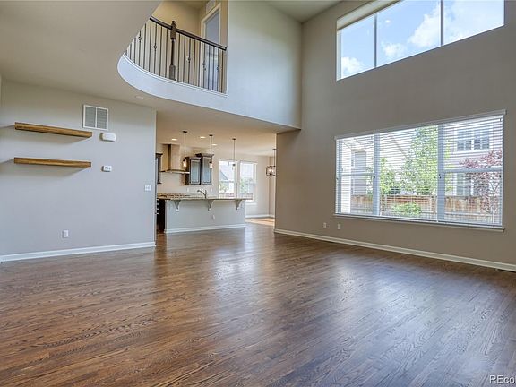Stunning 5-bed, 4 bath home in the Fallbrook Farms subdivision with beautiful builder upgrades and professional finishes throughout. With a striking rotunda staircase and welcoming foyer as you enter, the open and bright floor plan leads you into the great room with 2-story ceilings, a fireplace, and built-in features with wiring for surround sound. The gourmet kitchen has warm, dark cabinetry with granite countertops, large island, eat-in area, and butler pantry connecting to a formal dining room. The upper level has 2 bedrooms with a Jack & Jill bathroom, a spacious bonus room, and master bedroom with huge 5-piece bathroom. The fully finished basement boasts 9' ceilings and in-law living with kitchenette, bedroom, bathroom and an additional laundry unit. This move-in ready home has been meticulously maintained from top to bottom, with easy access to restaurants, retail, medical facilities, parks, and the I-25 corridor and E-470.