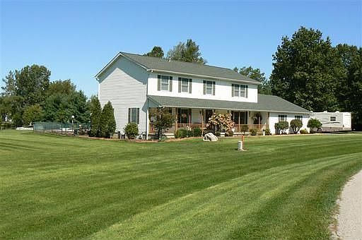 CURB APPEAL, COUPLED WITH PRIDE OF OWNERSHIP IS EVIDENT the minute you pull in the paved drive. The lush lawn is attributed to the irrigation system. You'll throughly relax on the covered front porch. This 4 bedroom, 2.5 bath, Colonial is sparkling clean from the luxurious master suite w/ jacuzzi, to the family and dining rooms divided by a two way gas fireplace. Enjoy spectacular waterfront views while on your private putting green or in the heated, inground pool. There's even a 3 car attached garage an d a two car detached garage for the water crafts after you've accessed the 7 all-sports lakes. All of this comes to you in a peaceful, country setting just 5 minutes from town. Budgeted heat costs average just $77.00 per month. 4979