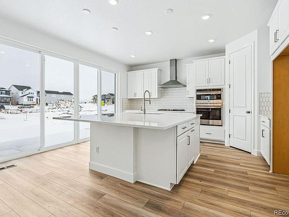 MLS#6727056 New Construction. Ready Now. The spacious and popular Hayden floor plan at Aurora Highlands offers a welcoming entry with a main floor study providing plenty of space for your family. The large kitchen, featuring a walk-in pantry, opens to an airy great room and dining area. It’s a chef’s dream with an oversized island, upgraded built-in appliances, that flows into the great room and outdoor living space, unfinished basement, covered outdoor living, and 8' x 12' sliding glass door.