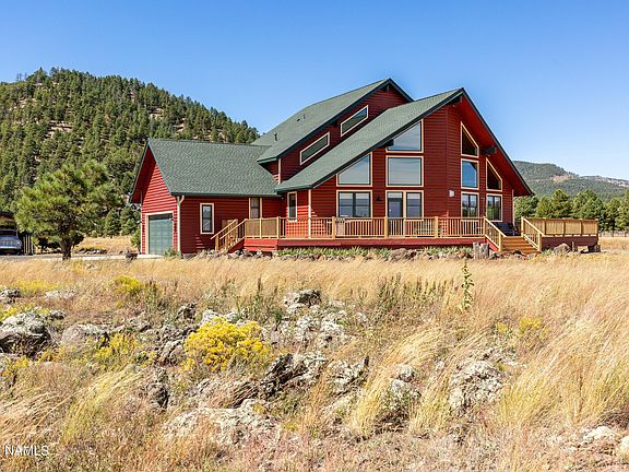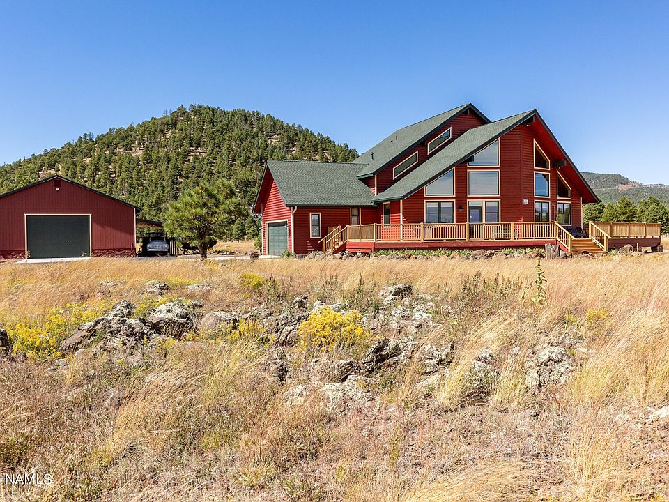 This is an amazing home has a mountain feel but with all the amenities and luxuries. Located in beautiful Parks AZ with gorgeous views situated on a 6 acres! Expansive Great Room with vaulted T&G ceilings, floor to ceiling windows, stone fireplace, live edge mantel and Flagstone hearth. Dream kitchen incl Viking appliances, custom painted cabinetry, wine fridge, & warming drawer. Custom finishes of wood, slate and granite. Main level has the living areas, 2 bedrooms, ½ bath and very large guest bath! Upstairs is the spacious family room/loft area plus amazing master bedroom suite with walk in shower and jetted tub, and a massive closet.  The house has an attached 2 car garage and a 2200 sf detached pull thru garage with mezzanine storage, office/man cave and covered patio.
