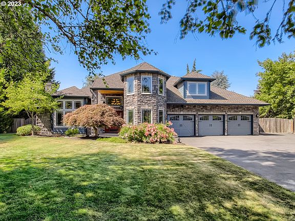 Custom-built traditional on private .62 acres. Entertainer's dream outdoor living space featuring: multi-sport court, 2 storage sheds, raised beds, and covered patio w/lighting and cedar detail. Spacious primary w/new 300 sqft deck overlooking the manicured backyard. Updates include presidential roof, refinished hardwood floors, ext. & int. paint, milgard windows,& cultured stone facade. Convenient main level bed/bath & upper bonus room w/storage.Generous 3-car garage with RV parking. [Home Energy Score = 4. HES Report at https://rpt.greenbuildingregistry.com/hes/OR10204909]