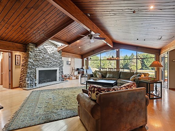 A rare opportunity to own 30 acres of complete privacy, this remarkable estate blends timeless craftsmanship with extraordinary amenities. Known as 'The Cabin,' built by David Bell, its legacy includes hosting Morgan Freeman during the filming of Shawshank. The 3-bedroom, 3-bath main residence is filled with natural light from walls of windows and doors framing sweeping views of spring-fed ponds. The primary suite boasts a fireplace, loft, walk-in closet, spa bath with jacuzzi, and direct hot tub access. Entertain in the vaulted living/dining room with stone fireplace, or in the gourmet kitchen with stainless appliances, including a gorgeous double oven. Outdoor living is unrivaled with a vast deck, stone grill, pizza oven, hot tub, and stunning vistas. Additional highlights include hardwood floors, a basketball court, bomb shelter with artisan well, and a 4-car garage with a luxurious guest apartment above, featuring 1 bed, 1 bath, theater screen, and panoramic views. The apartment kitchen also features stainless steel appliances and flow seamlessly into the dining and living room areas. Minutes from Snow Trails and I-71, this estate offers unmatched seclusion and sophistication.