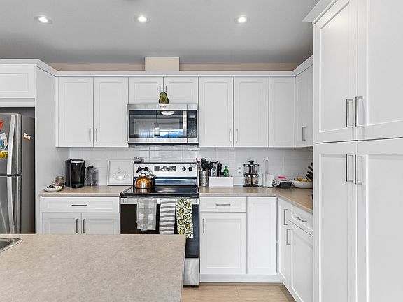Modern Living with Breathtaking Mountain Views in Prime Penticton location: This bright, airy 4th-floor, southeast-facing corner unit delivers over 1,100 sq. ft. of refined style. Thoughtfully designed with 2 beds, 2 baths, and a versatile den, the open-concept space is flooded with natural light, featuring a cozy gas fireplace, expansive picture windows framing the views, and a sleek kitchen with tons of storage and counter space. The luxurious primary suite boasts a spa-inspired ensuite with a double vanity. Enjoy year-round entertaining on the spacious covered deck with a built-in gas BBQ hookup. Built in 2024 (concrete & steel), the building offers central climate control, covered parking, same-floor storage, and is steps from Skaha Park & Beach, welcoming all ages and two pets (with restrictions).