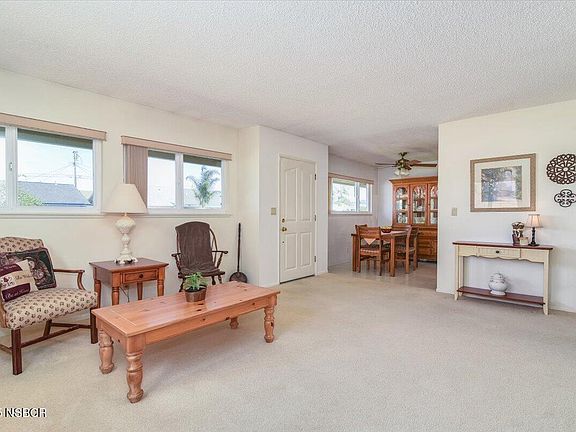 Appealing Mission Hills Single-Story Home -Welcome to this beautifully maintained home in the highly desirable Mission Hills neighborhood of Lompoc. From the moment you arrive, you'll be impressed by the inviting curb appeal featuring a brick wall, planters, and an extended paved driveway. Step inside to a bright and spacious living room that flows seamlessly into the dining area and kitchen. The cheerful eat-in kitchen offers abundant cabinetry, a ceiling fan, and a picture-perfect view of the manicured front yard. A built-in hutch and decorative shelving add both style and functionality. The kitchen opens to an expansive second living room--ideal for gatherings--complete with a ceiling fan and sliding glass doors that lead to the backyard retreat. The primary suite is a true haven, featuring a recently updated en-suite with designer subway tile, a modern vanity, and sleek fixtures. Two additional spacious bedrooms share a beautifully updated bathroom with contemporary finishes. Step outside to an entertainer's dream backyard, fully fenced with block walls for privacy. Enjoy lush green grass, a large patio, surrounding planters, and a spacious patio perfect for morning coffee at sunrise or unwinding at sunset. Additional highlights include: Newer Milgard dual-pane windows, Newer central heating system, Storage shed in side yard. This turnkey home offers the perfect blend of comfort, style, and functionality--all in a sought-after neighborhood. Don't miss the opportunity to make it yours!