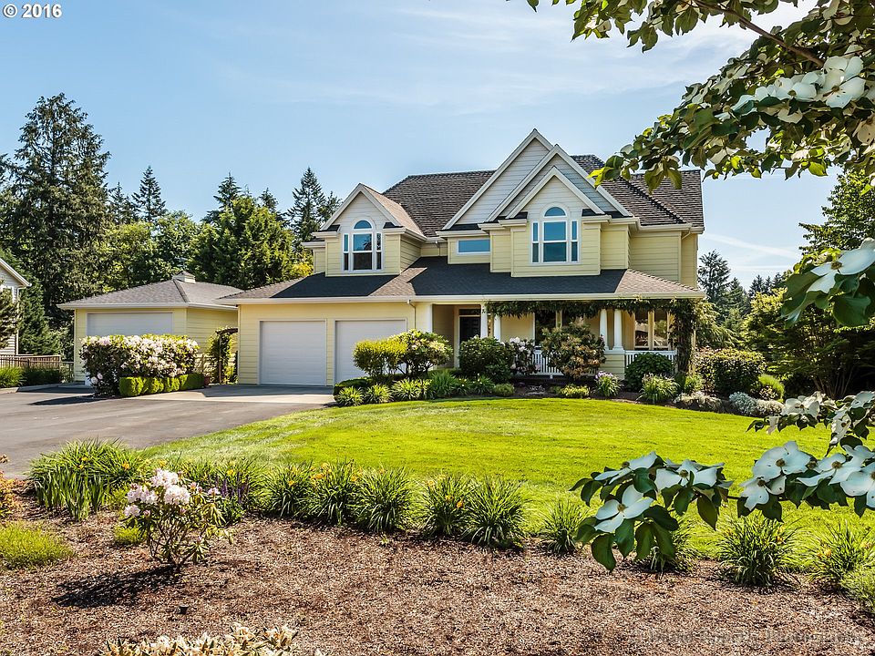 Starting at the front porch this southern style country estate welcomes you home. Main level features master bdrm suite, living rm, gourmet kitchen, formal dining rm and an office/den. Upstairs are two bdrms and media rm. Lower level has 2 extra bdrms. One currently used as craft room. Step outside to the covered deck with stone gas fireplace, BBQ hook-up and wired for TV. Wine cellar. State of the art heating/cooling.