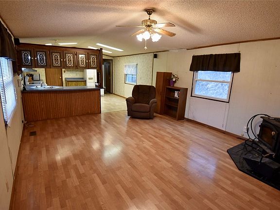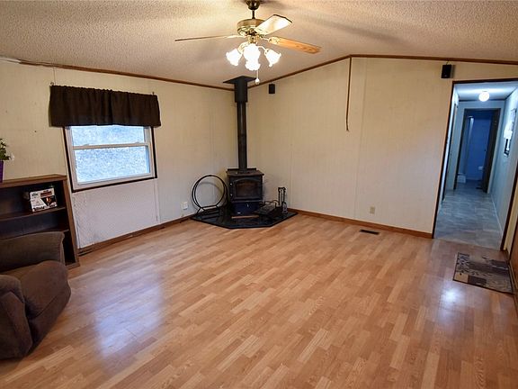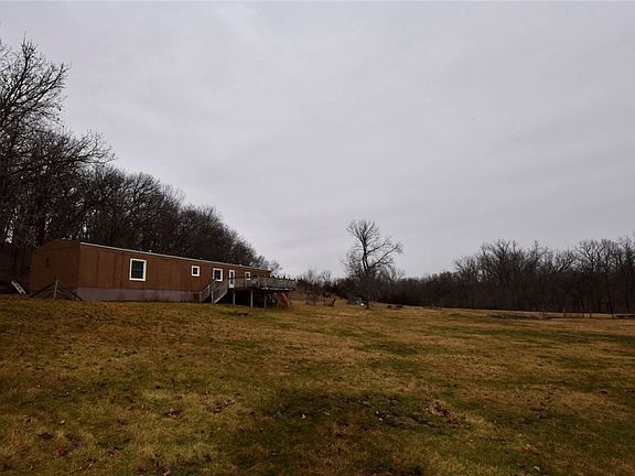This acreage is affordable, has easy access to I-35 for commuting, and has plenty of space to create your own paradise. With 10 acres over two lots, there is plenty of room to build, garden, play, plant trees, etc. You can enjoy sunrises from the large front deck on this manufactured home. It has 1,168 sf with 3 bedrooms, 1 full bath and a 3/4 bath. The eat-in, open concept kitchen opens to a nice-size family room with a wood burning stove. The master bedroom also has a master bath. It does need some work and is sold as-is. The home sits back from the road and is very private. There is a concrete storm shelter near the back door of the home.