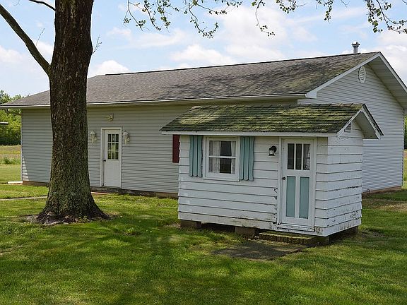 New Roof March 2021!! This ranch style home, sitting on 3.1 acres, was built by a skilled carpenter for his family. This solidly built home features a 37 foot covered concrete porch . Home has 3 larger bedrooms with the master bedroom having an on suite bathroom. There is an an additional full bathroom off the hallway. All the carpet inside the home-except the master bedroom- is covering original hardwood floors. The hardwoods were well maintained prior to being covered and should be easily restored. The home features a larger eat in kitchen . Home also has a full, dry basement that is also plumbed for a shower. The basement also feature built in closet and storage space. The large laundry/mudroom is located at the back door of the home and would provide plenty of space for those shoes coats and backpacks that need to be deposited before entering the home. There are also built in closets and storage cabinets in this laundry/mudroom. Located behind the home is a 30 X 40 stick built building that is perfect for woodworking, crafting or extra storage . This building was constructed in 1995. There is also a detached 2 car garage. A screened in gazebo and child size playhouse round out this property. This property is the perfect example quiet county living. For more information text (618) 200-2362.